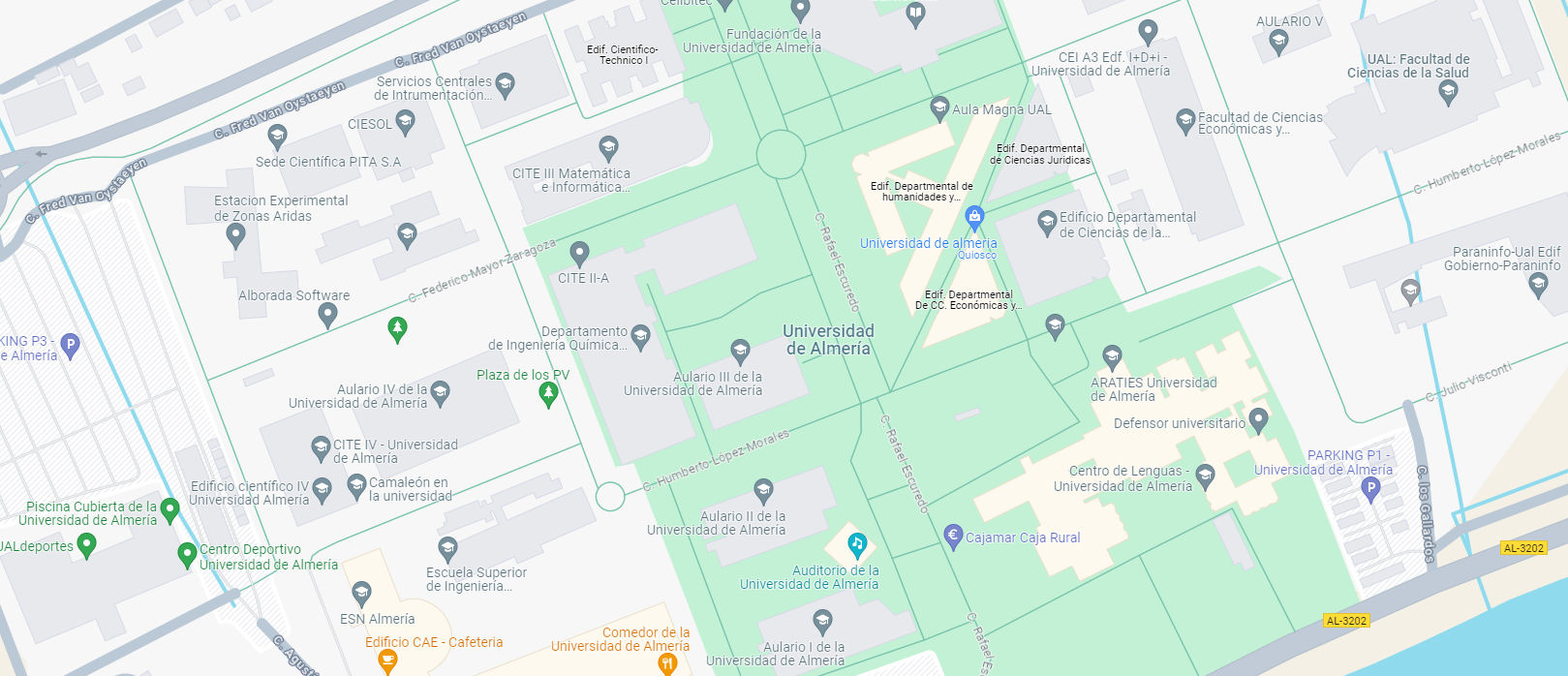 Transport in Almería is affordable and, most importantly, intuitive. Bus lines 11, 12, 18, and 19 stop at, or depart from, different locations downtown and take roughly 30 minutes to arrive on campus. You are strongly advised to download the Surbus app (available on Google Play/App Store) for accurate wait times. Zoom in on the map below if you wish to track your route or choose your preferred stop.